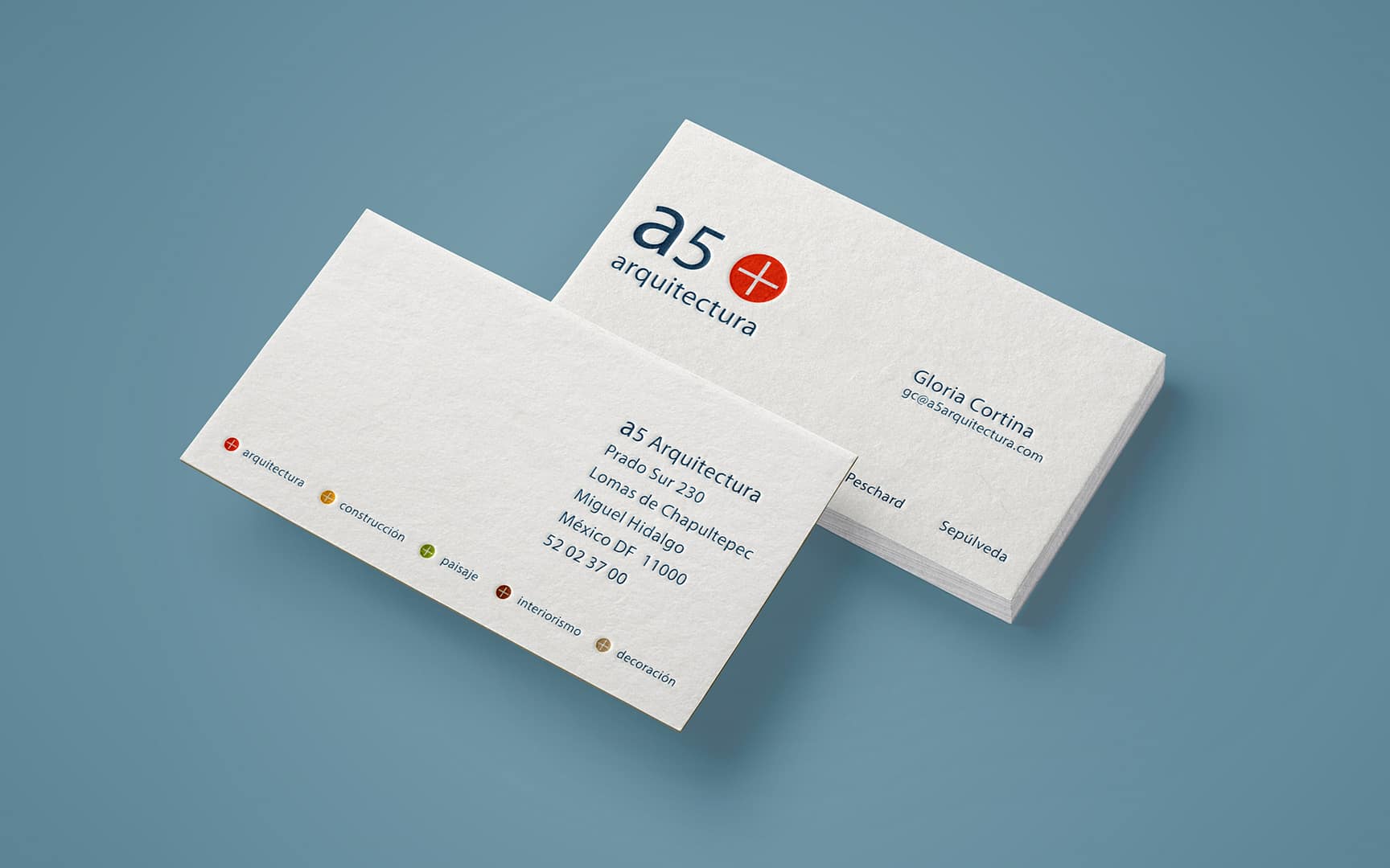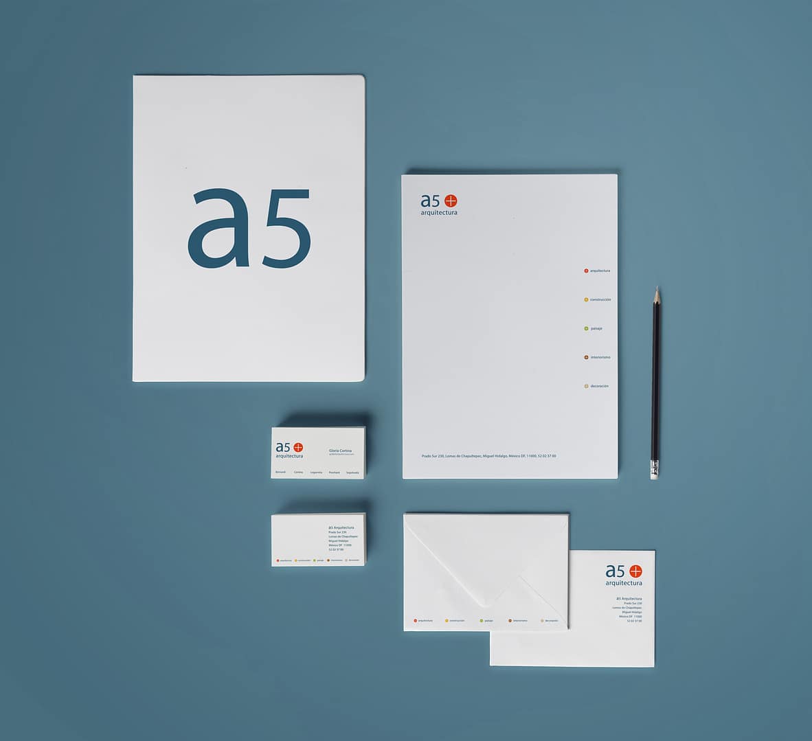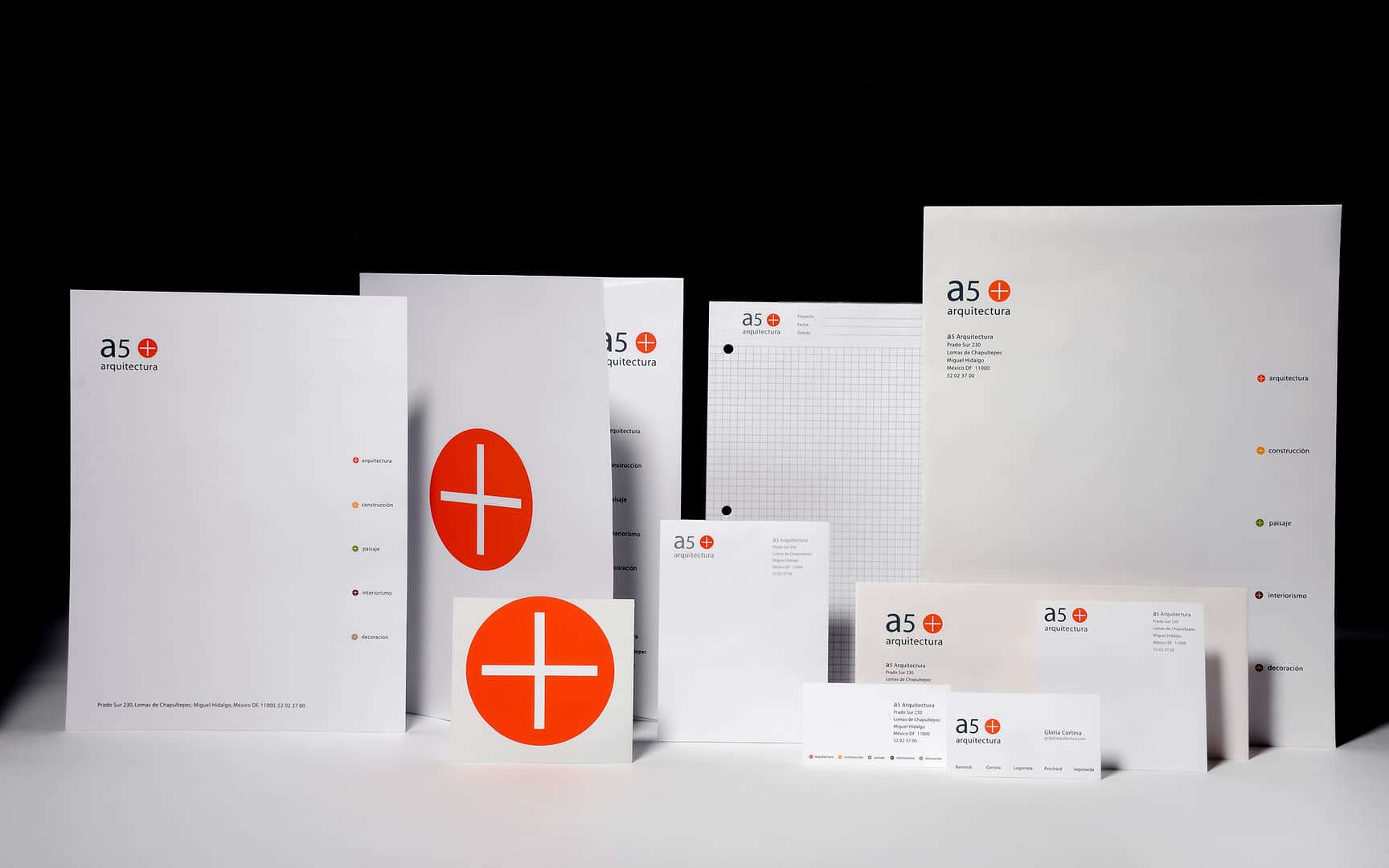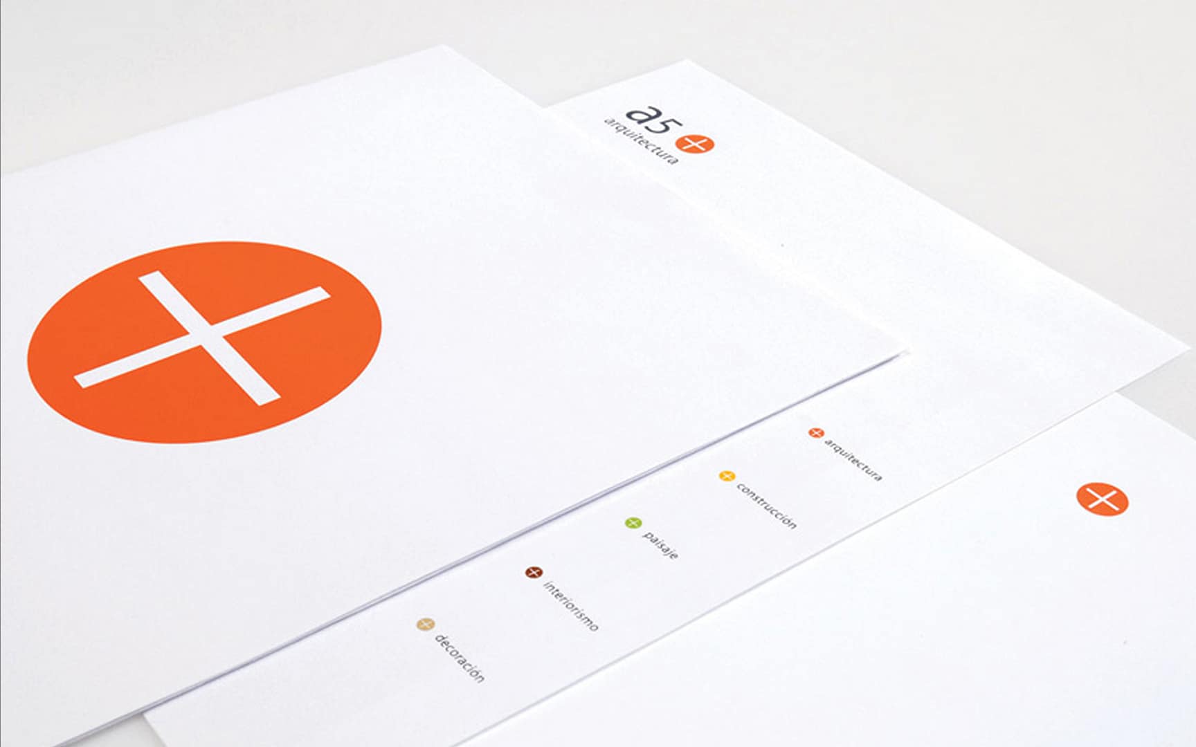 El símbolo y la identidad corporativa que creamos agrupa las diferentes disciplinas del despacho de arquitectos: arquitectura, construcción, paisaje, interiorismo y decoración. El diseño incluyó todas las aplicaciones de papelería necesarias y un manual de identidad para su adecuada implementación.
