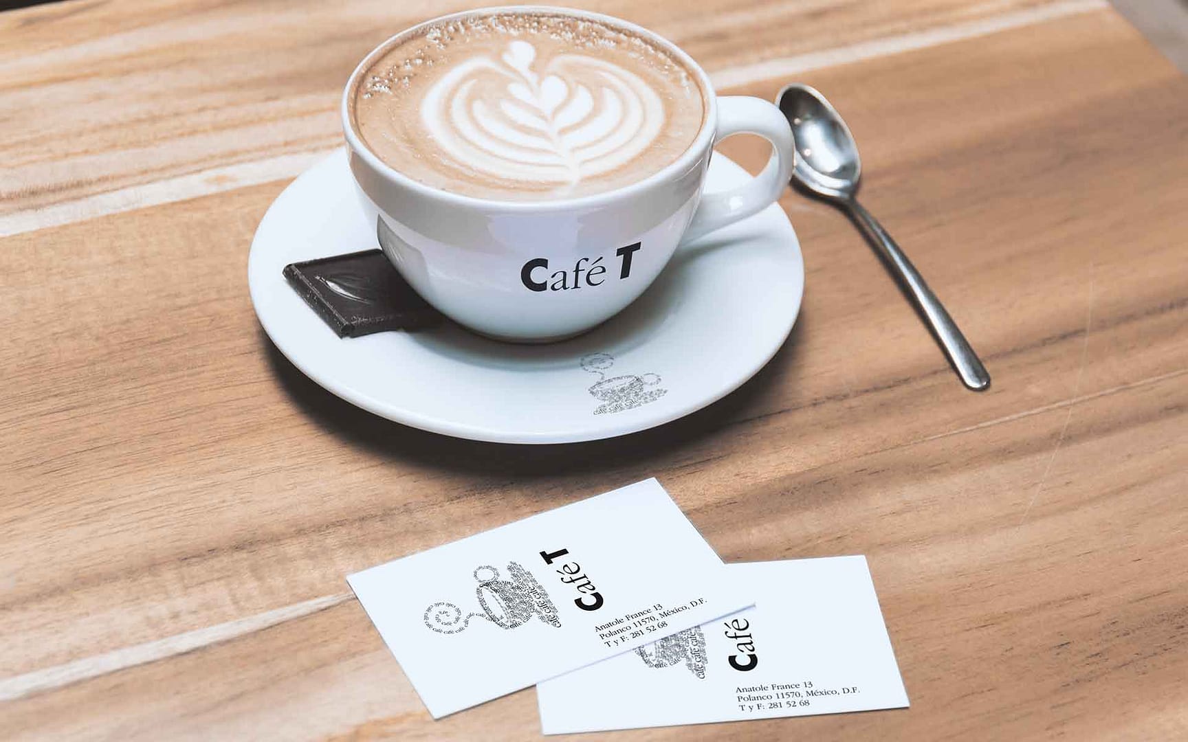 Café T es el nombre de una cafetería tipo Starbucks para la que creamos el concepto y el naming de la marca. Este trabajo incluyó tanto el diseño del logotipo, como de menús, uniformes, interiores y mobiliario.