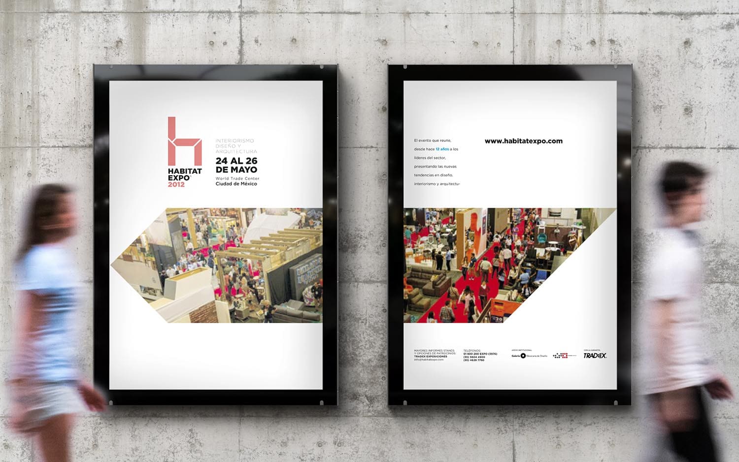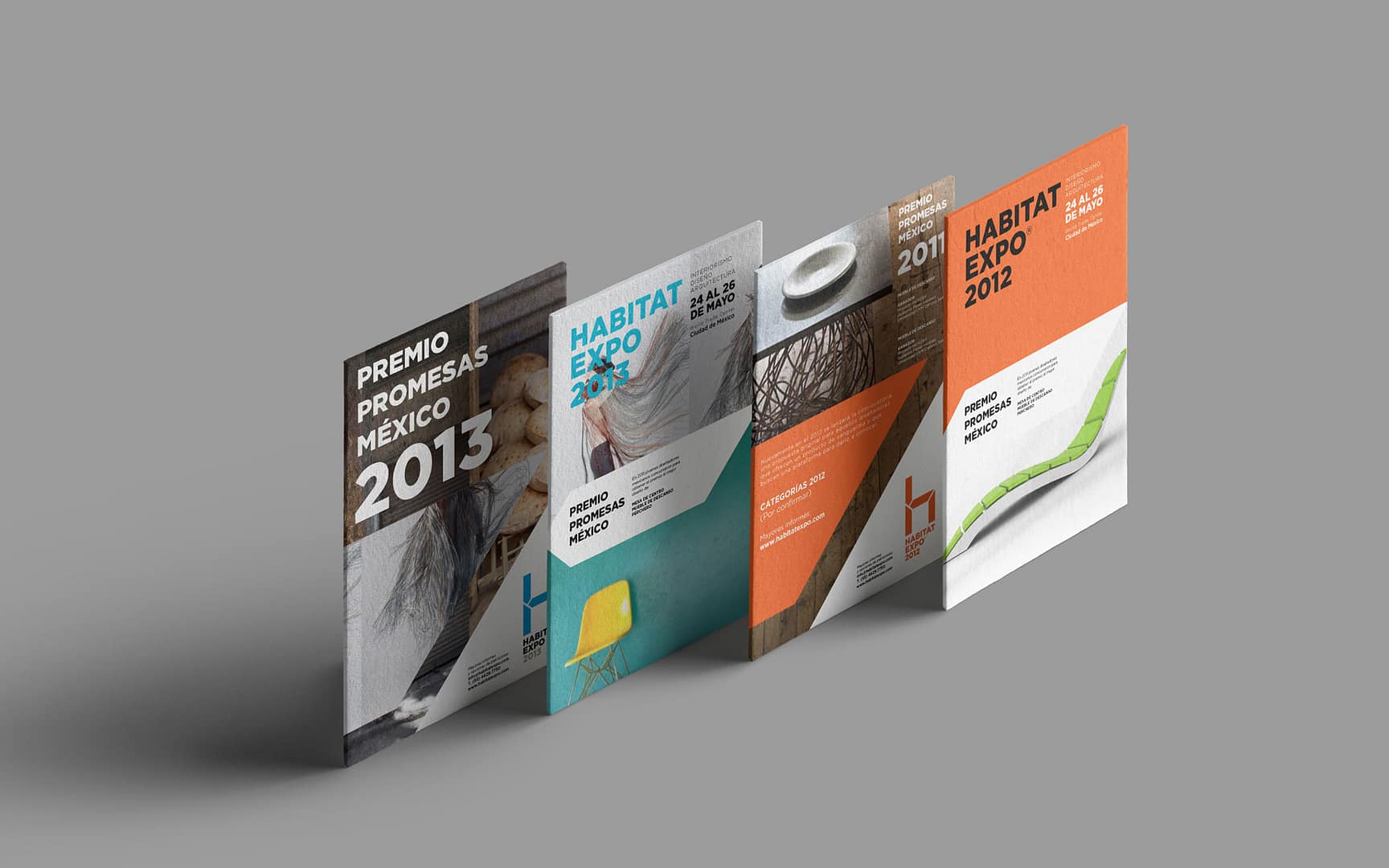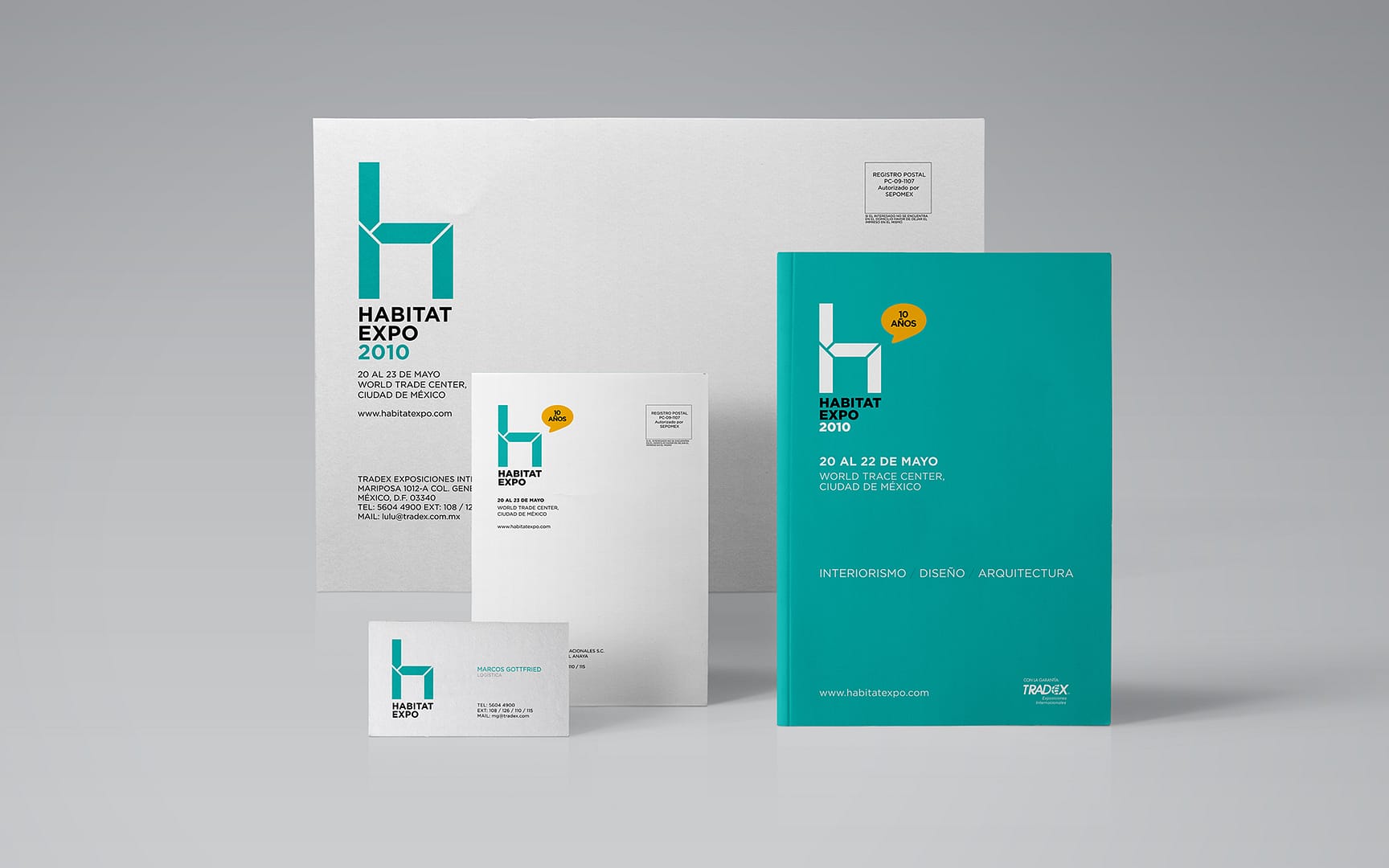 Hábitat Expo es una feria que presenta las últimas tendencias en interiorismo, diseño y arquitectura. En ella participan más de 300 expositores que muestran su oferta a más de 17,000 visitantes. El diseño del símbolo lo hicimos en forma de “h” y hace referencia a una silla. El sistema de identidad lo creamos para que pueda ser aplicado durante diez años.