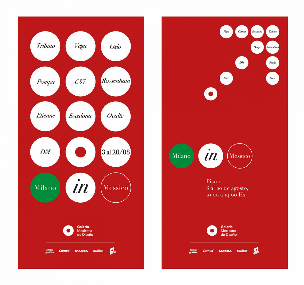 En 2017, para celebrar la participación de los diez diseñadores mexicanos más sobresalientes en la Fiera di Milano, desarrollamos la identidad gráfica, las aplicaciones en invitaciones, las aplicaciones digitales y el diseño de la museografía de una exposición presentada en la Galleria Mexicana de Diseño.
